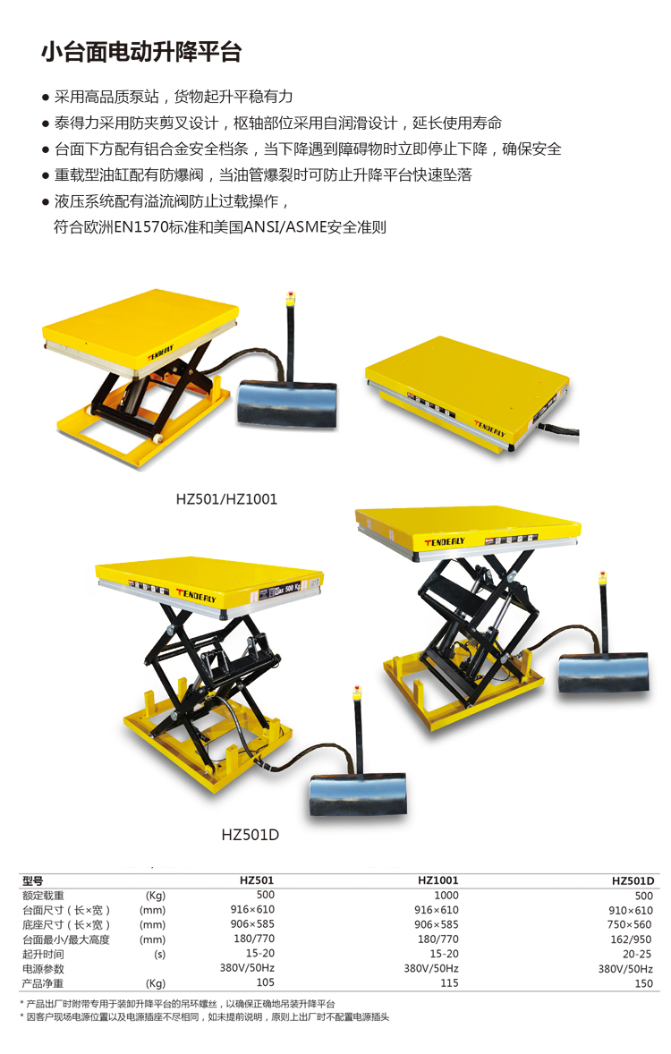 ● 采用高品质泵站,货物起升平稳有力