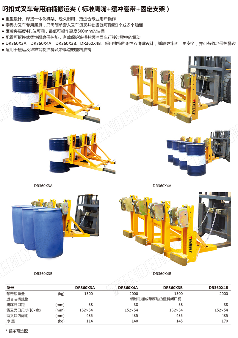 叼扣式叉车专用油桶搬运夹(重载专业型)