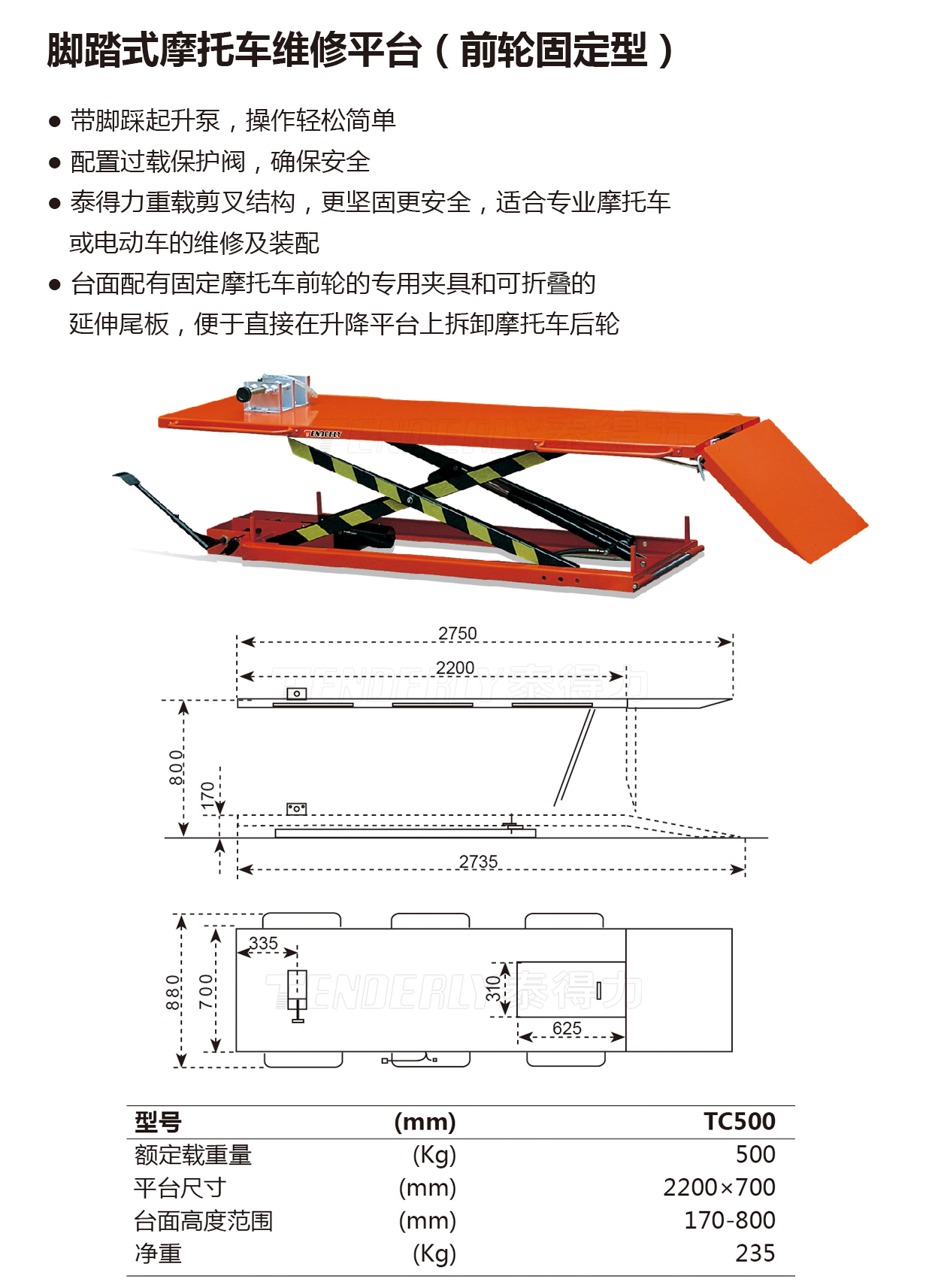 脚踏式摩托车维修平台(前轮固定型)
