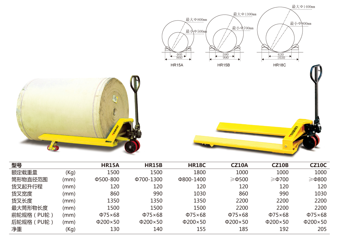 ● 适用于造纸、包装印刷、纺织等需要搬运圆柱形货物的行业