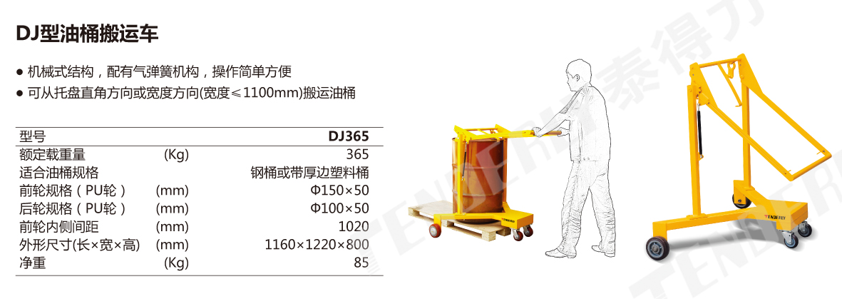 ● 可从托盘直角方向或宽度方向(宽度≤1100mm)搬运油桶