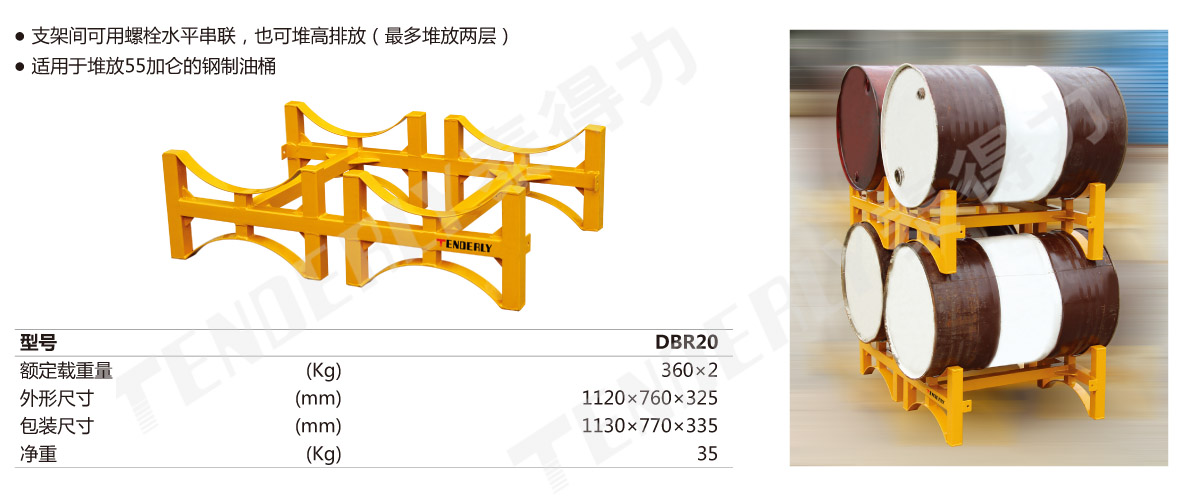 ● 支架间可用螺栓水平串联,也可堆高排放(最多堆放两层)
