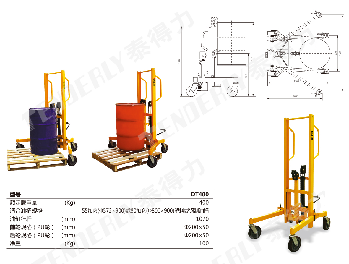 DT400型高起升液压油桶搬运车