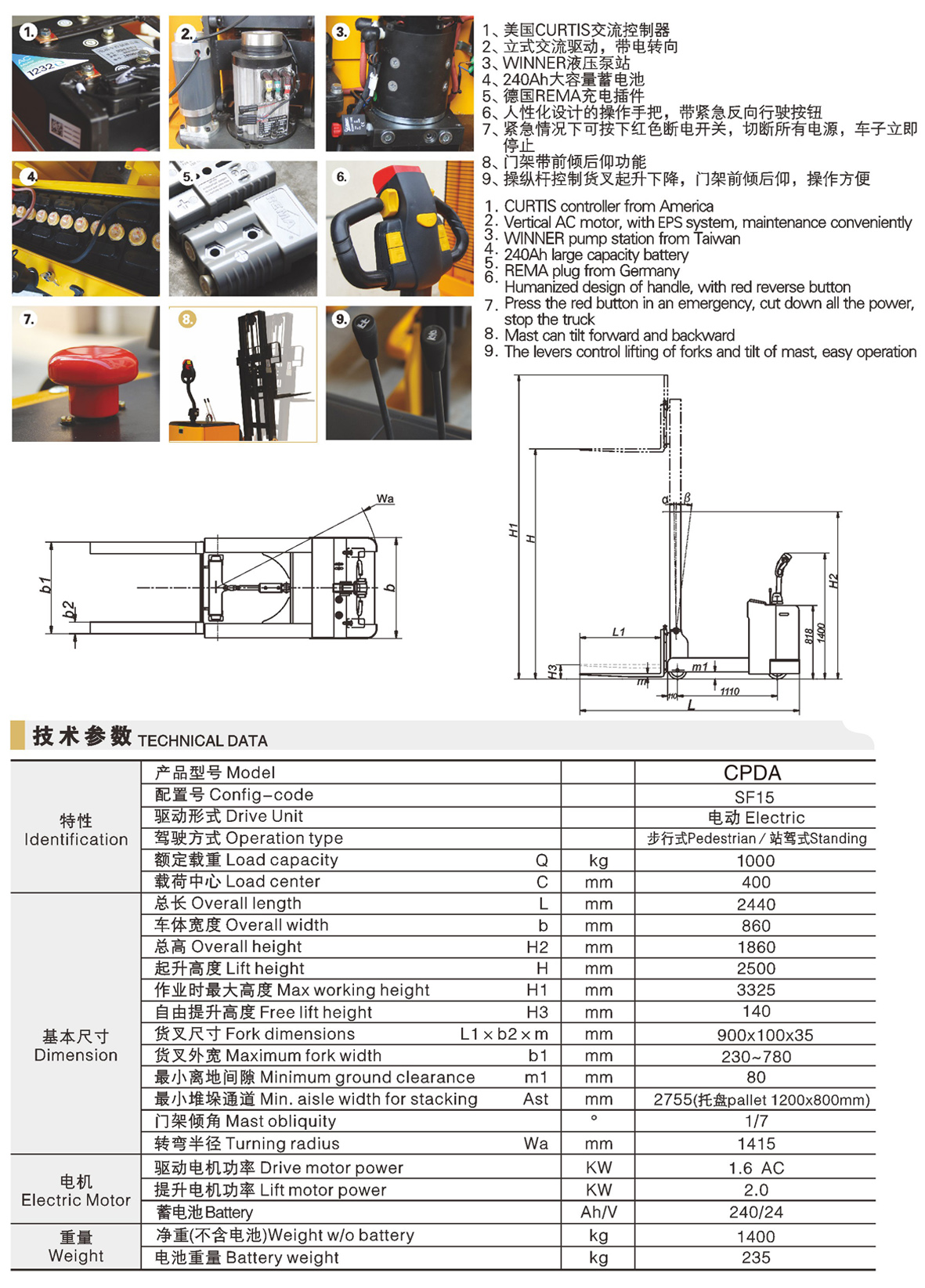 CPDA型平衡重电动堆高车