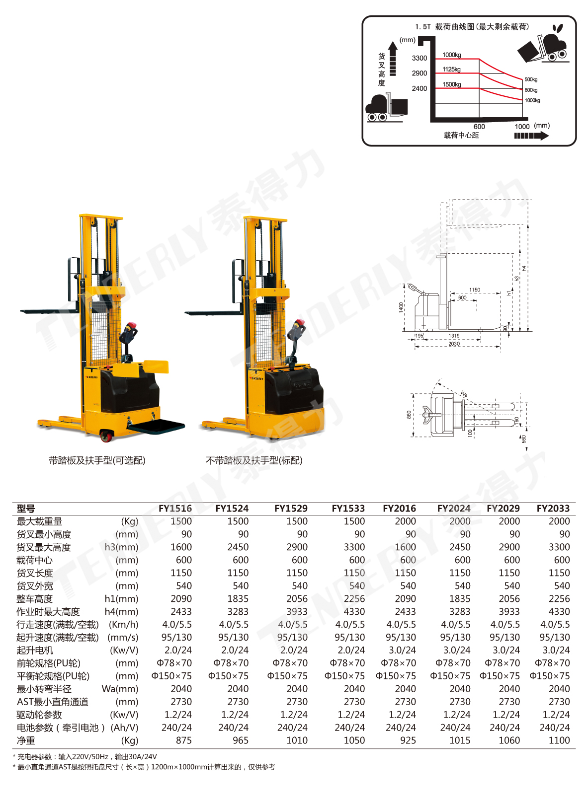 ● 以下堆高车仅适用于单面托盘,如川字型托盘或9支点托盘