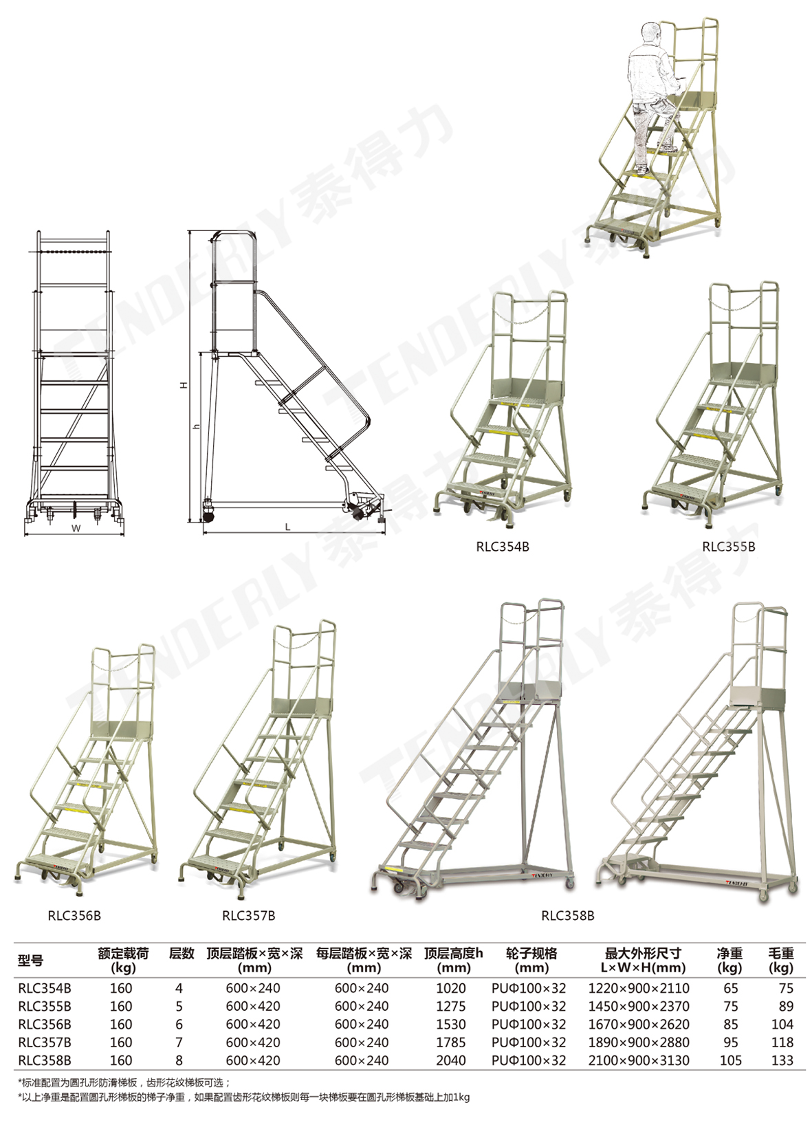 ● 按EN131欧洲标准加强型设计,配置加高型护栏及安全链条