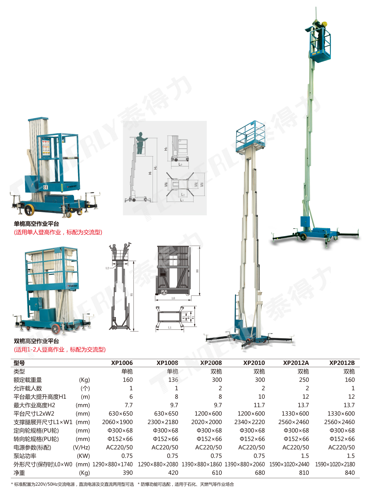 ● 泰得力领先的多导向轮机构设计,使平台升降平稳自如,且保证各桅柱同步升降
