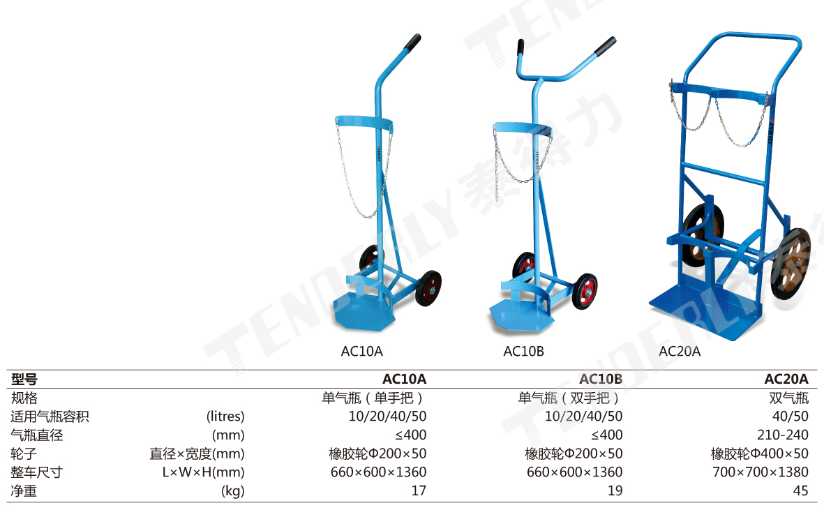 ● 泰得力气瓶推车采用橡胶实心轮胎,